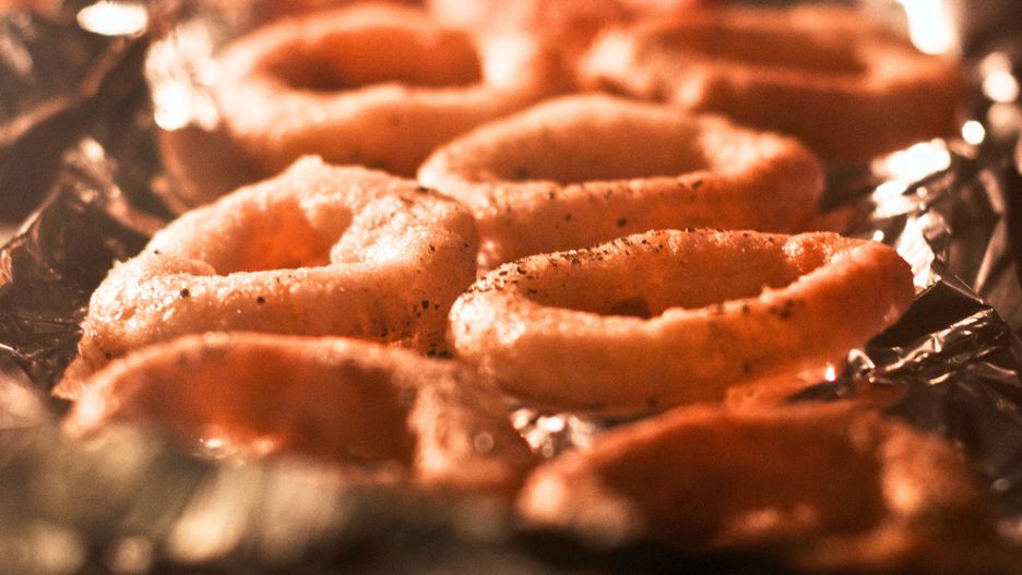 Krążki cebulowe w budkach z fast foodem to wysokokaloryczna przyjemność. W domowych warunkach możesz przygotować zdrowszą wersję z piekarnika, doprawioną tak jak lubisz – z dodatkiem włoskich ziół, czosnku lub ostrej papryczki. Do maczania zrób domowy sos czosnkowy lub inny na bazie majonezu i gęstego jogurtu. Dodaj oliwę truflową lub pastę gochujang, aby za każdym razem przekąska nabierała innego wyrazu.