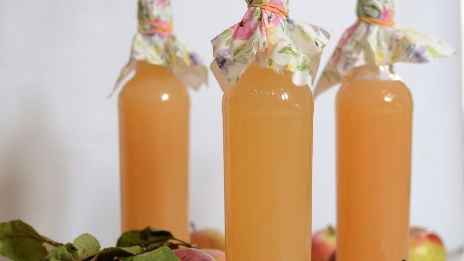 - Wrzuć jabłka do słoja z osłodzoną wodą, starając się, aby nie wystawały ponad wodę (zapobiegnie to pleśnieniu). Przykryj słoik ściereczką i zabezpiecz gumką lub sznurkiem. Odstaw w ciepłe miejsce na 4–6 tygodni. Przez pierwsze 7 dni mieszaj codziennie wyparzoną drewnianą łyżką lub delikatnie kołysz słojem.