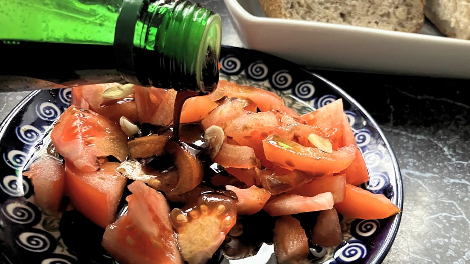 Ten gęsty olej o lekko orzechowym smaku na stałe zagościł w mojej lodówce – a w związku z tym także w codziennej diecie – dzięki wizycie cioci z Austrii. Na jedno ze spotkań rodzinnych przywiozła coś specjalnego, mówiąc, że Austriacy dodają to do wszystkiego. Rzeczywiście olej sprawdził się zarówno do jajek sadzonych, jak i zup kremów, ale najlepszy okazał się w prostym połączeniu – z pomidorami i czosnkiem.