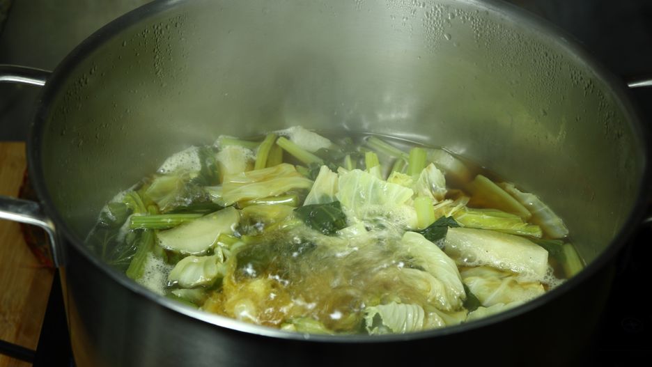 - Kiedy warzywa się zeszklą, zalej je 1/2 szklanki wody. Gotuj je na małym ogniu przez 15 minut.