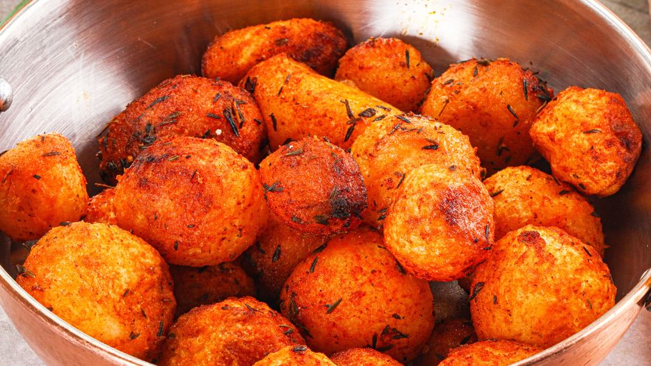 Kuleczki ziemniaczane możesz usmażyć w garnku z gorącym olejem lub we frytkownicy. Jeśli zrobić kuleczki w airfryerze, spryskaj je oliwą lub olejem i piecz w 180 stopniach Celsjusza przez ok. 15-18 minut, aż się zarumienią. Takich kulek nie trzeba dodatkowo odsączać na papierze.