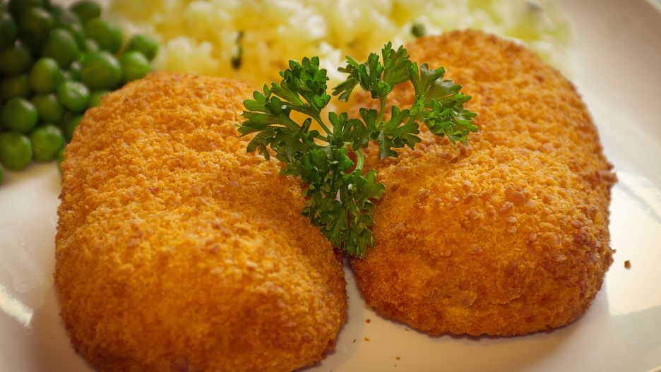 - Obtocz kotlety w mieszance orzechów i parmezanu.