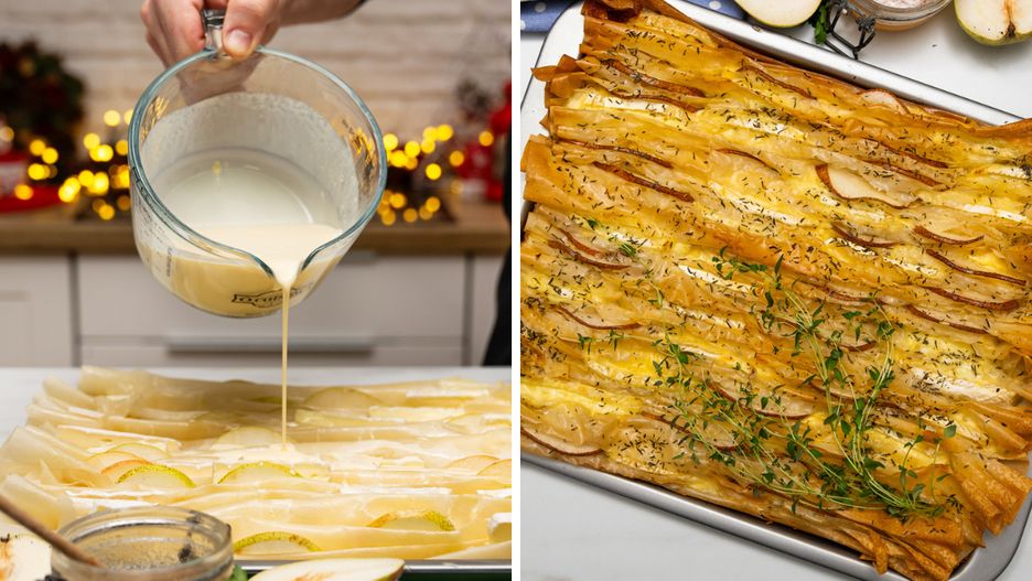 Czas na zimową tarte z ciasta filo z dodatkiem gruszki i sera pleśniowego. Palce lizać!