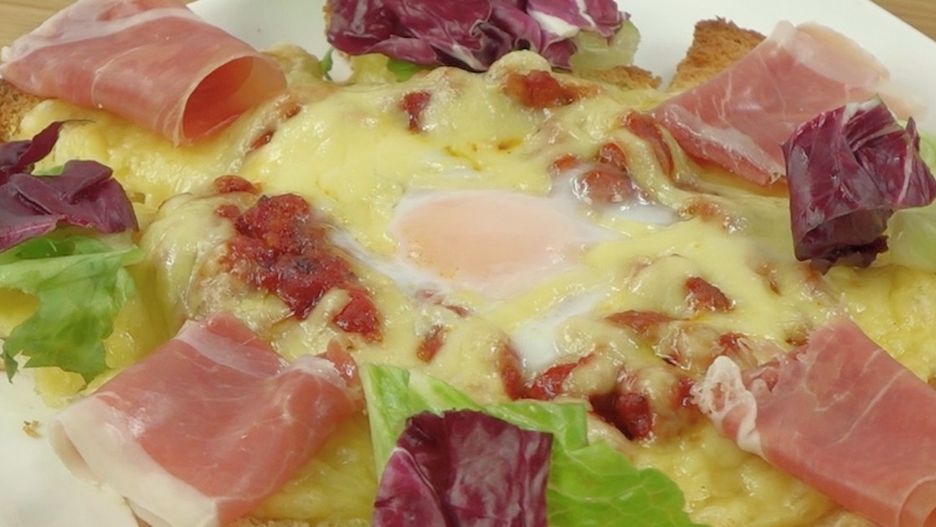 Niezwykłe tosty z sosem bolognese, serem, jajkiem, szynką i sałatą
