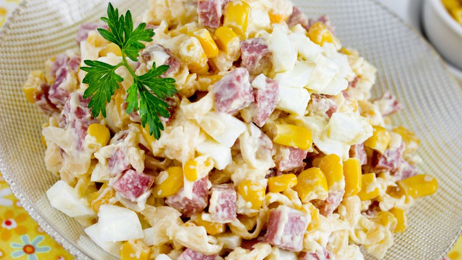 Cztery składniki: dobra swojska kiełbasa, jajka ugotowane na twardo, chrupiąca kukurydza i kremowy ser żółty – to przepis na wielkanocną sałatkę, która jest o wiele łatwiejsza od jarzynowej i bardziej zróżnicowana pod względem smaku oraz tekstury. Robi się ją w kilka minut, więc łatwo przygotujesz większą ilość na święta.