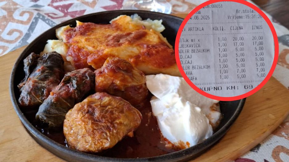 Całość? 69 marek bośniackich, czyli ok. 37 euro. W przeliczeniu na złotówki – mniej niż 170 zł za obiad z widokiem na jeden z najpiękniejszych mostów Europy. Złapałam się za głowę. Dla porównania – w Chorwacji za podobne dania (bez deseru i kawy) trzeba by zapłacić niemal dwa razy tyle.