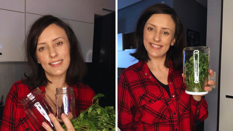 Nie trzeba mieć żadnych dodatkowych zdolności, aby odpowiednio zabezpieczyć pietruszkę. Wszystko, czego potrzebujesz, to tak naprawdę: dwa słoiki — jeden większy, drugi mniejszy, pokrywka (pasującą do większego słoika) oraz woda.