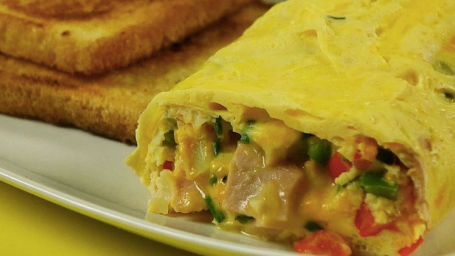 Poniżej znajdziesz przepis na przyrządzenie omletu w woreczku z szynką, cebulą, papryką, szczypiorkiem i serem.