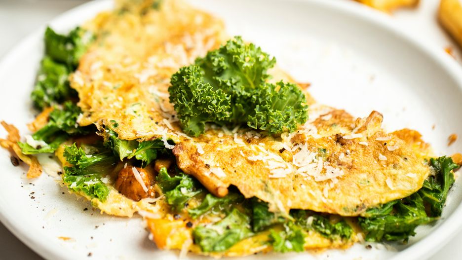 Przepis na omlet z jarmużem i kurkami