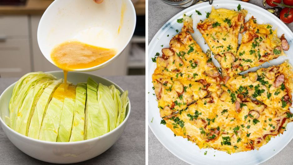Zaskakujący omlet z kapustą, serem i frankfurterkami. Szybki i tani obiad dla całej rodziny