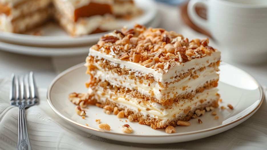 Miodowe blaty, delikatny krem budyniowy i chrupiące orzechy komponują się ze sobą jak nic innego. Poniżej prezentuję wybłagany przepis. Nie jest specjalnie krótki, ale wydaje mi się bardzo intuicyjny. Skoro mi się udało – to i ty dasz radę. Tego jestem zupełnie pewny!