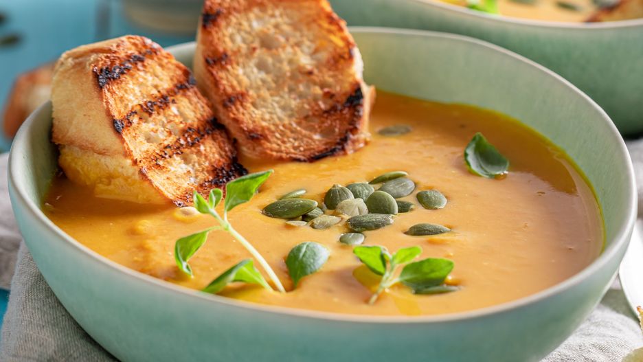 - Gotową zupę podawaj na ciepło, posypaną pestkami dyni.
