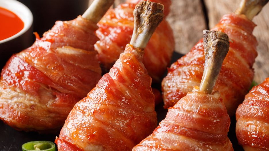 Pałki, czyli podudzia kurczaka są idealne na obiad dla małych dzieci, a także na imprezową przekąskę. Zgrabne kawałki wystarczy chwycić za kość, więc do jedzenia nie potrzeba żadnej zastawy. Co więcej, mięso owinięte boczkiem nie wysusza się podczas pieczenia, w efekcie czego wychodzi miękkie i wilgotne.
