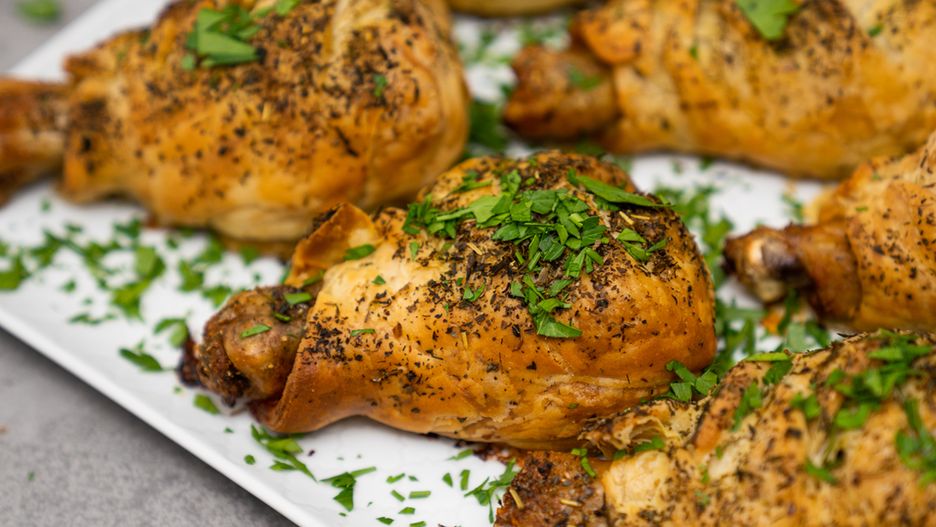 Kurczak gości na moim stole chyba najczęściej. To uniwersalne i delikatne mięso, które można przygotować na wiele różnych sposobów. Moja rodzina przepada za pieczonymi pałkami w przyprawach, więc postanowiłam na ich bazie wymyślić coś nieco innego. Kawałki mięsa dobrze przyprawiłam i otuliłam kołderką z prostego ciasta na bazie mąki, jajka, wody i masła. Efekt końcowy jest po prostu bajeczny. Delikatnie chrupiące ciasto skrywa w środku soczystego, idealnie doprawionego kurczaka. Przepis sprawdzi się zarówno na rodzinny obiad, jak i ciepłą przekąskę na imprezę. A co najważniejsze, przygotowanie jest naprawdę proste. Zdecydowanie polecam ci przetestować te pyszne pałki.