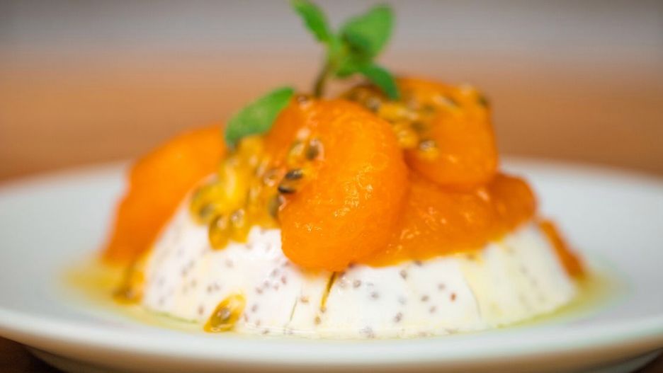 Jak deser fit, to panna cotta z nasionami chia. To jednak nie koniec dobrych wieści. Tej kombinacji towarzyszy przepyszny sos z mango i mandarynek. Po prostu palce lizać!