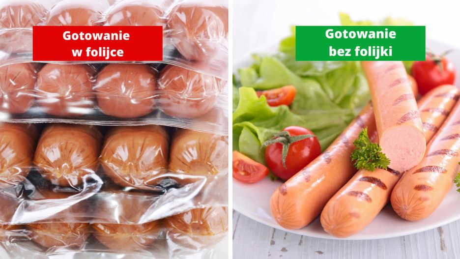 Wybierając dobrej jakości parówki, folii nie znajdziemy w ogóle. Natomiast jeśli wybierzemy takie, które ją posiadają, to należy koniecznie ją zdjąć. Opakowania i naczynia, w których gotujemy i pieczemy potrawy, mają ogromny wpływ na skład finalnego posiłku. Już przy 15 stopniach Celsjusza z plastikowej folii uwalniają się szkodliwe dla nas substancje. W ten sposób przedostają się do potraw, a potem do naszego organizmu podczas ich spożywania. Niektóre z nich nie są szkodliwe dla naszego zdrowia, zaburzają pracę naszego układu hormonalnego.