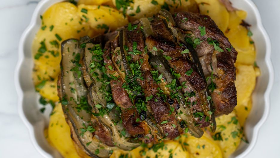 Jakie dodatki do karkówki? Nasze mięso podaliśmy dzisiaj z ziemniaczanymi talarkami, które upiekliśmy razem z karkówką. W ten sposób są idealnie miękkie i "przechodzą" aromatem pieczonego mięsa. Do obiadu dodaj swoją ulubioną surówkę lub sałatkę i pyszny obiad dla całej rodziny.