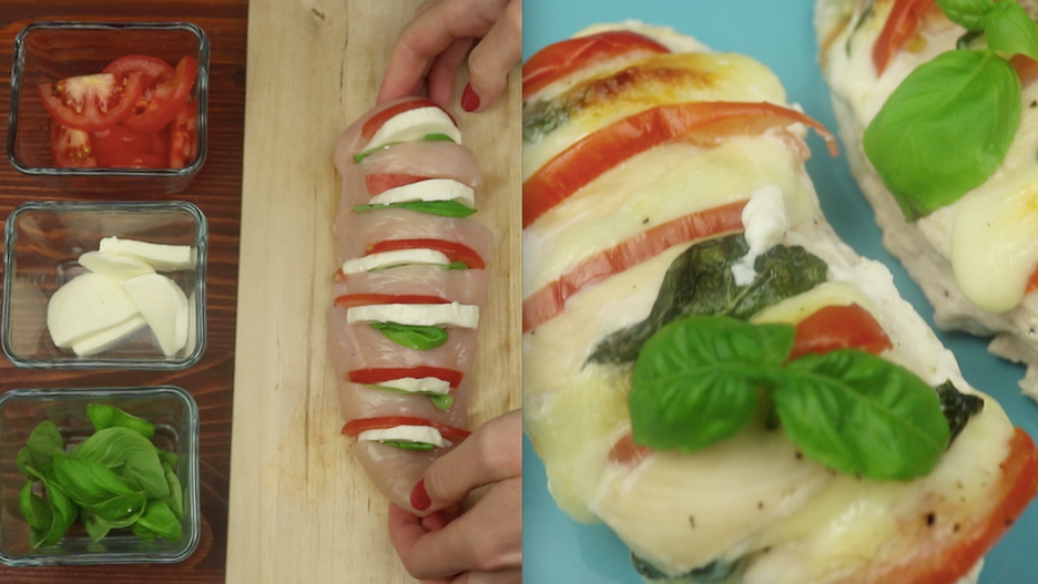 Istnieje wiele sposobów na podawanie kurczaka. Już za chwilę zobaczysz jedną z takich propozycji - pieczona pierś z kurczaka z pomidorem, bazylią i mozzarellą, podawana ze śmietaną i oliwą z oliwek.