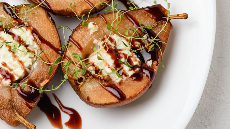 Pieczone gruszki z twarogiem i czekoladą