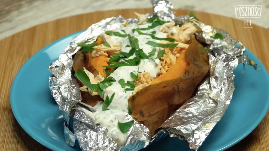 Tym razem przygotowaliśmy dla Was batata z piekarnika :) Połączyliśmy go z kurczakiem i sosem jogurtowym. Po prostu palce lizać :)