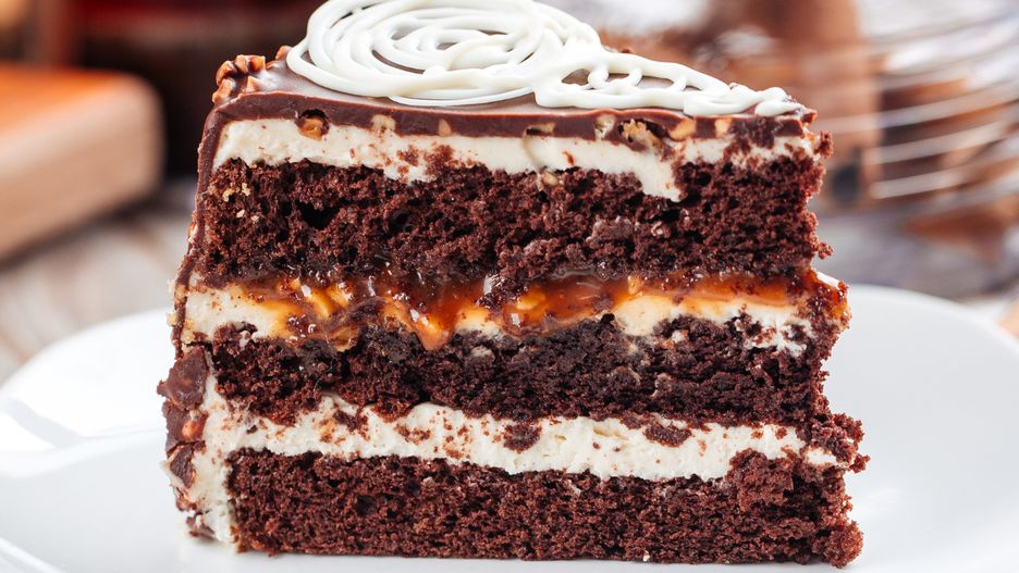 To ciasto nie tylko pięknie prezentuje się na talerzu, ale przy tym smakuje po prostu nieziemsko. Puszysty, mięciutki biszkopt kakaowy przekładam masą z mascarpone i śmietanki, wzbogaconą o karmelową nutę. Aby słodyczy nie było przez przypadek za mało, dokładam dodatkową warstwę kajmaku, a całość zwieńczam polewą czekoladą z chrupiącymi orzeszkami.