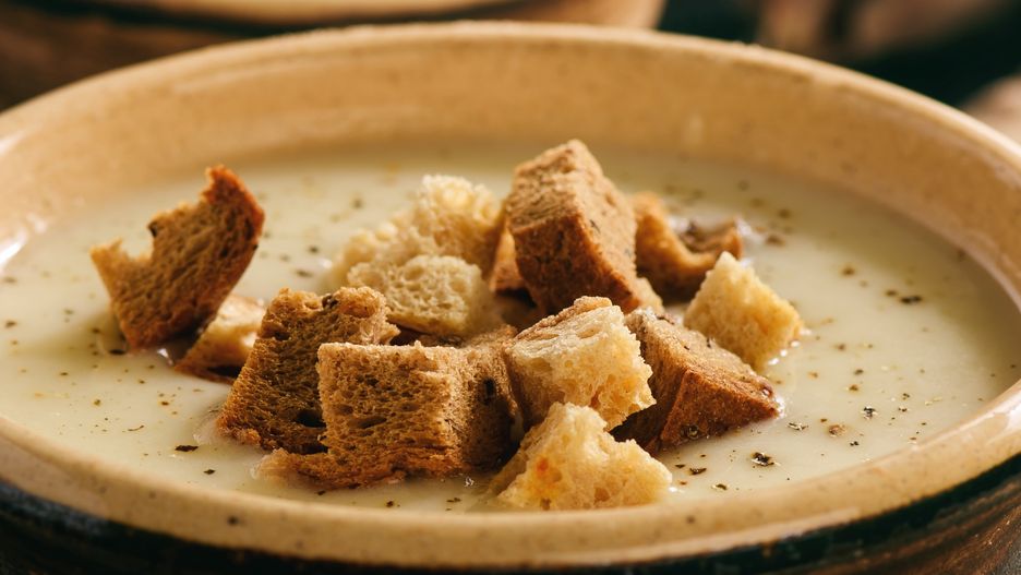 - Podawaj zupę w miseczkach, posypując grzankami. Smacznego!