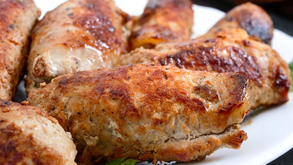 Rozbitym mięsem wieprzowym, podobnie jak filetami z kurczaka, możesz owinąć wiele różnych składników. Piersi drobiowe są bardziej delikatne, podczas gdy schab to konkretny kawałek mięsa. Dlatego dobrze jest wrzucić do środka coś wilgotnego na zmiękczenie włókien. W kotletach mazurskich znajdziesz jajko ugotowane na twardo, szynkę i ser żółty wymieszane z popularnym sosem pomidorowym.
