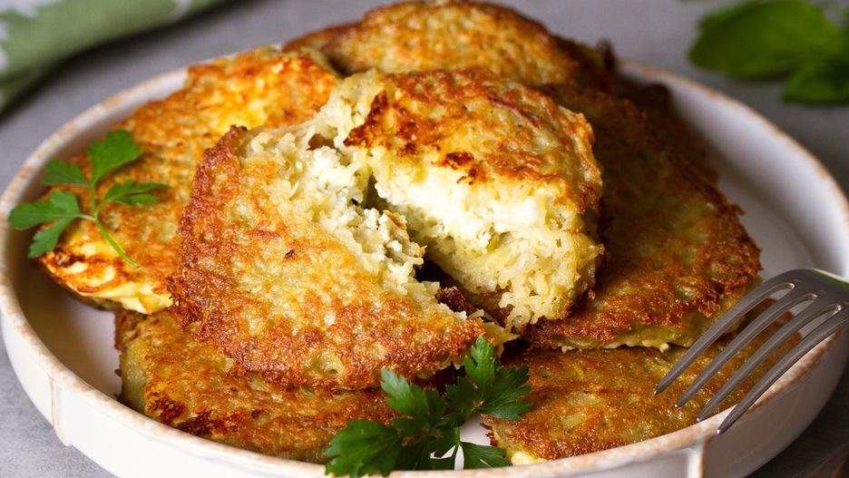 - Smaż placki z obu stron na złoty kolor, aż będą chrupiące.