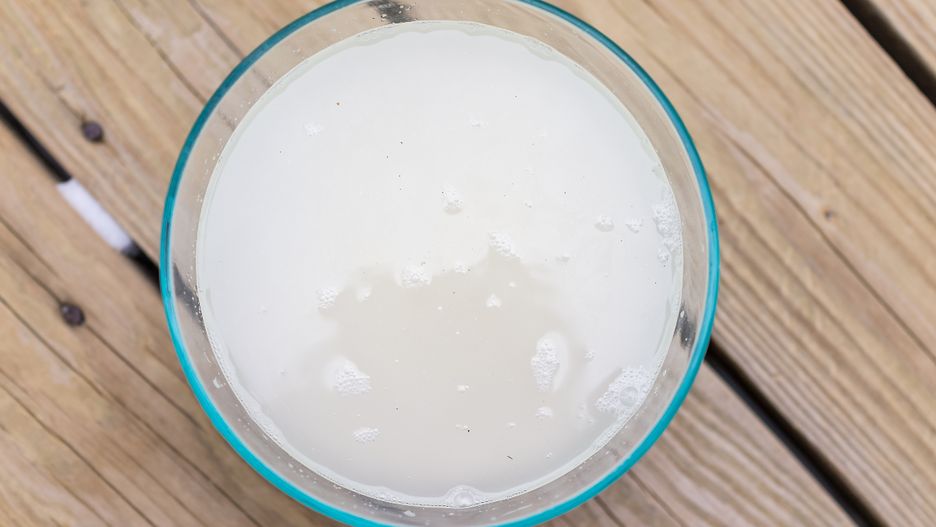 - Przelej ją przez gazę. Uzyskaną wodę przelej do wysokiego naczynia. Płatki możesz wykorzystać do przygotowania placków owsianych.