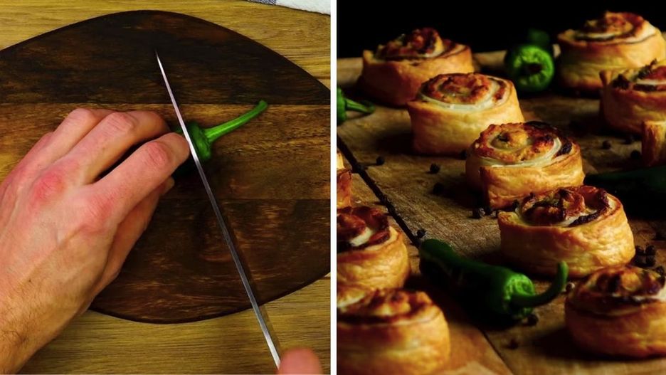 Pikantne rollsy z ciasta francuskiego z papryczką i cheddarem