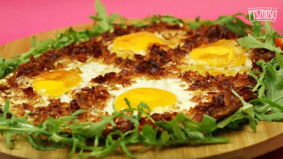 Placek ziemniaczany w wersji XXL z serem, boczkiem i jajkami