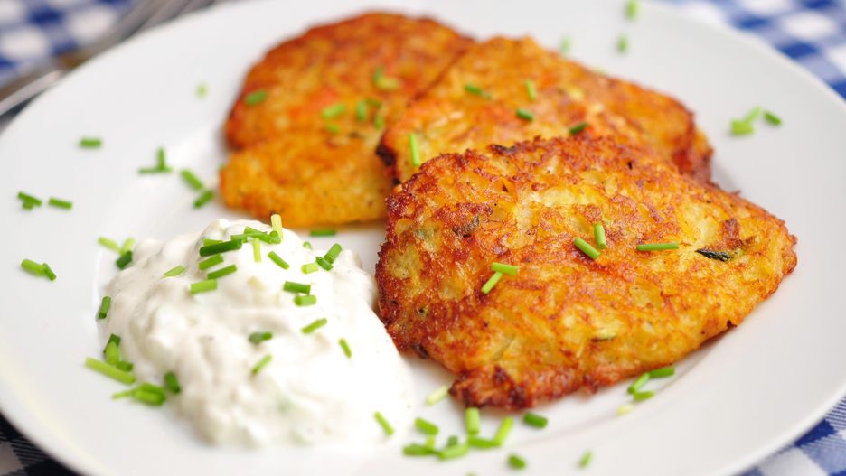 - Na głębokiej patelni rozgrzej dużą ilość oleju. Kiedy zacznie skwierczeć, uformuj na niej spore placki. Smaż po 3 minuty po każdej stronie. Placki powinny być rumiane.