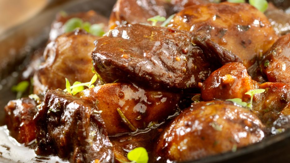 - Na kilka minut przed końcem duszenia dodaj do potrawy plastry czosnku. Całość dopraw solą i pieprzem, a następnie zagęść mąką. Smacznego!