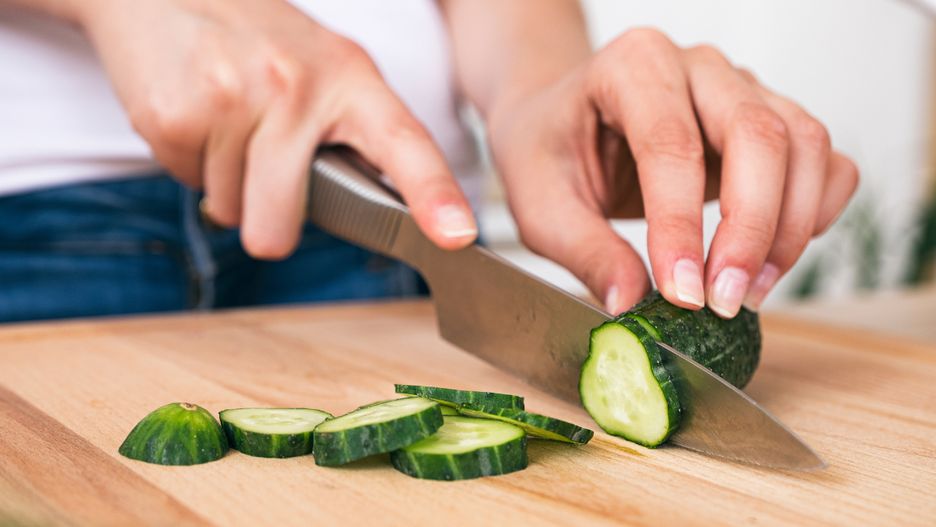 - Pracę nad przepisem rozpocznij od pokrojenia ogórków w plasterki.