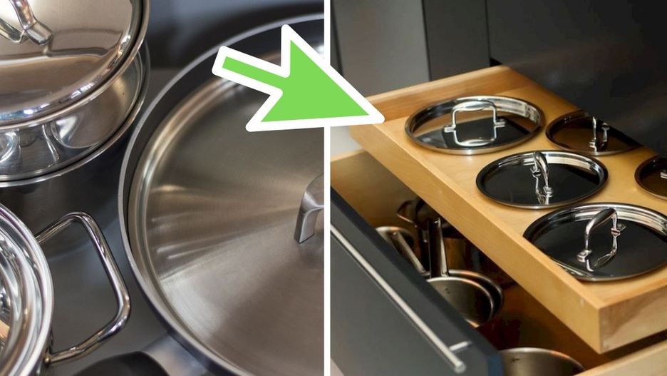 Takie rozwiązanie pozwoli Ci przechowywać wszystkie pokrywki na garnki w jednym miejscu. Bonus - zawsze będziesz miał do nich szybki i łatwy dostęp.