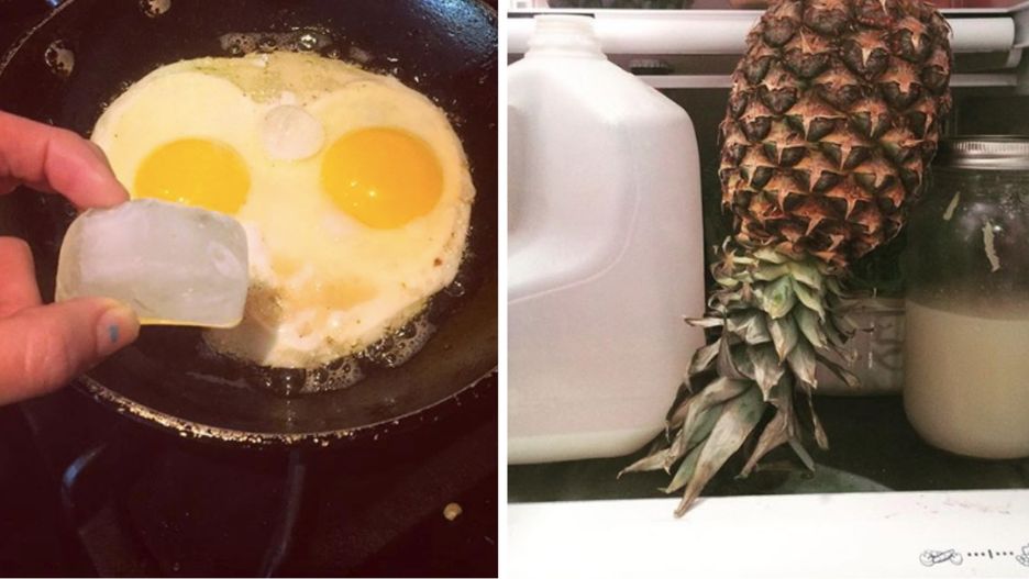 #2 Kostka lodu przyda się podczas przygotowania jajek na patelni