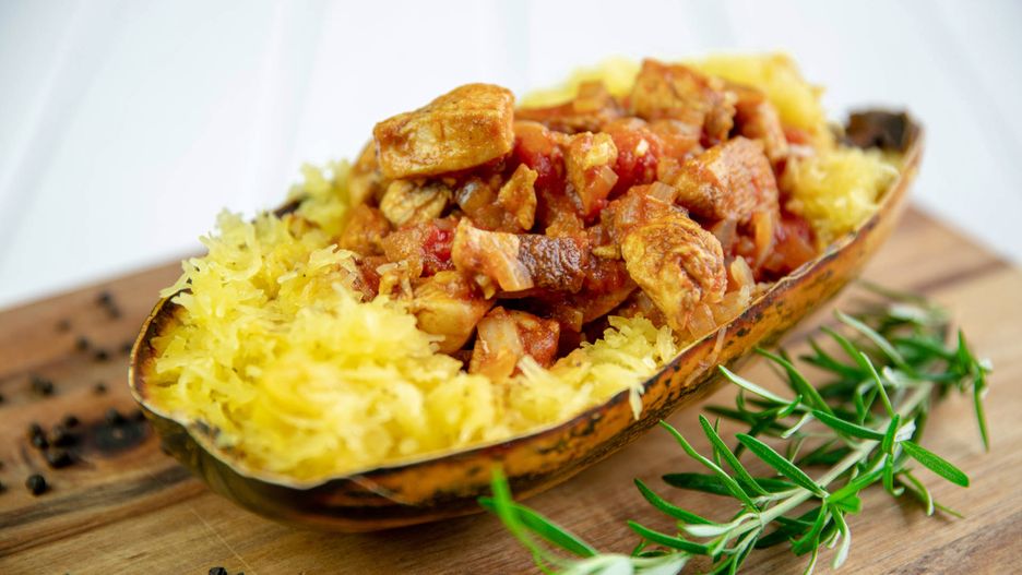 W jesiennym sezonie nie może zabraknąć pieczonej dyni, w której wylądowała potrawka z kurczaka. Pyszny i syty obiad w jednym ?