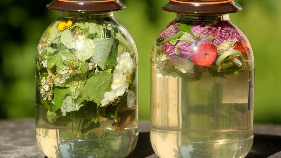 - 50-100 g mieszanki świeżych ziół, np. kwiaty lipy, rumianek, ziele dziurawca, macierzanka, liście malin lub czarnej porzeczki