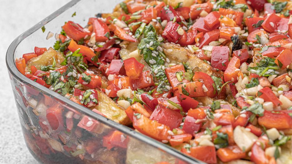 Prosta sałatka z piekarnika. W roli głównej bakłażan