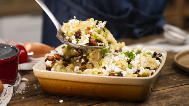 Wykorzystaj nasz przepis dnia i przygotuj dla swojej rodziny prawdziwy klasyk wywodzący się z kuchni kujawsko-pomorskiej. Kluski ziemniaczane z białym serem, bo o nich mowa, wychodzą idealnie za każdym razem. Proste i szybkie danie jest też bardzo sycące, dlatego nikt nie odejdzie głodny od stołu. Chcesz dowiedzieć się więcej? Obejrzyj wideo z dokładną instrukcją. Listę składników znajdziesz poniżej.