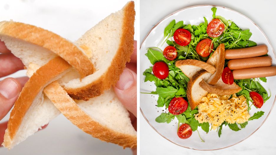 Tym razem główną rolę w śniadaniu zagra nie sałatka, jajecznica czy parówki, a chleb tostowy. Wszystko dzięki nietypowej formie podania. Zawinęłam dwie kromki w kształt przypominający gwiazdkę. Nie wymaga to specjalnych umiejętności, a jednocześnie potrafi odmienić wygląd całego talerza. Nietypowe kształty i różnorodne formy podania to mój sprawdzony patent na to, aby do jedzenia namówić również niejadki. W końcu jemy również oczami, więc nawet prosta potrawa podana w efektowny sposób może zrobić duże wrażenie i przy tym jeszcze bardziej kusić do zjedzenia. Polecam przetestować ten patent, bo chlebowe gwiazdki są proste w przygotowaniu, a staną się przy tym piękną ozdobą śniadaniowego talerza.