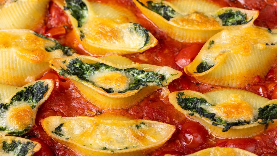 My używamy makaronu conchiglioni, który swym kształtem przypomina muszle i jest jednym z najlepszych wyborów do zapiekanki, ponieważ mieści sporo farszu w eleganckiej formie. Niestety - poza dużymi marketami mogą okazać się trudno dostępne. Jeśli okaże się, że w twoim pobliskim sklepie spożywczym akurat ich nie ma, możesz użyć innych rodzajów makaronu, które również sprawdzą się bardzo dobrze.