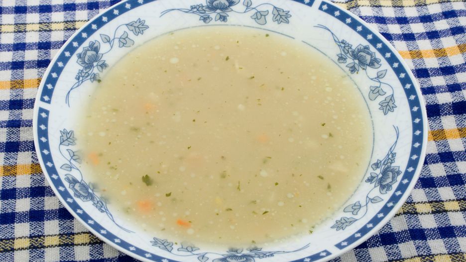 - Jeśli chcesz, by zupa była bardziej kremowa, zahartuj żółtko odrobiną gorącej zupy i energicznie wmieszaj do garnka. Nie gotuj już zupy.
