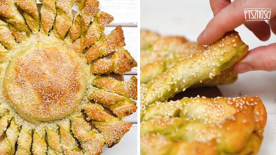 Słoneczko z ciasta francuskiego z camembertem i pesto