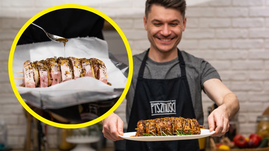 Przepis na pyszny i soczysty schab w aromatycznej marynacie, przekładany cebulą, ziemniakami i boczkiem. Tym obiadem zachwycisz swoich bliskich.