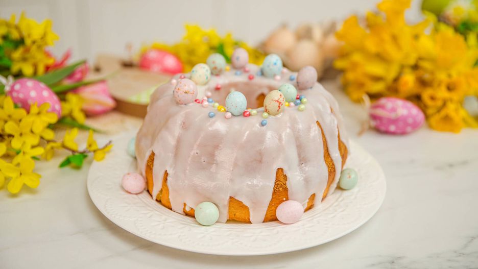 Gotową i przestudzoną babkę udekoruj lukrem i cukrowymi jajeczkami. Oczywiście, możesz użyć też innych dodatków i stworzyć swoją własną, autorską kompozycję.