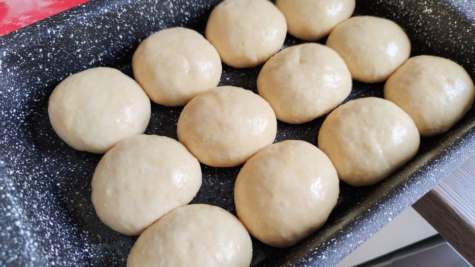 - Po wyrośnięciu przełóż ciasto na blat podsypany mąką i uformuj z niego 10-14 kul w zależności od tego, jak duże chcesz otrzymać parowce,