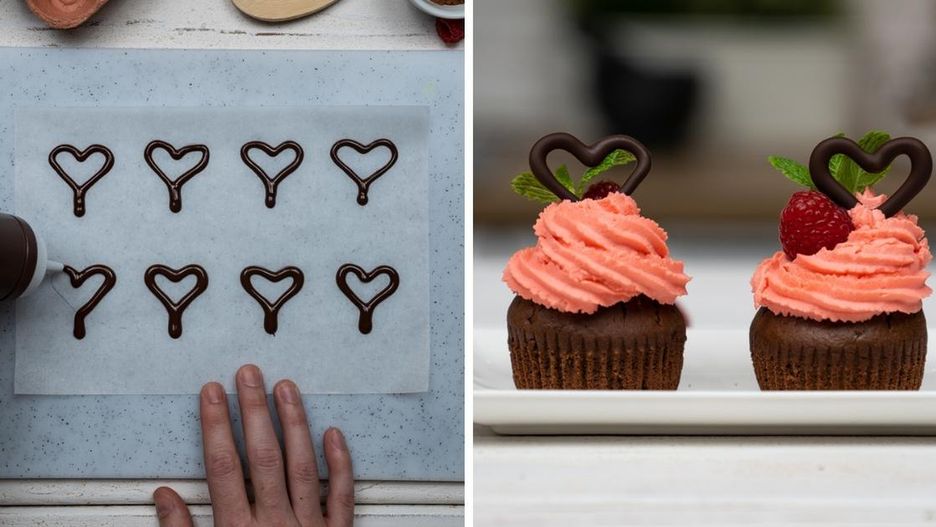 Pracę nad przepisem na babeczki z kremem malinowym rozpocznij od przygotowania czekoladowych serduszek.