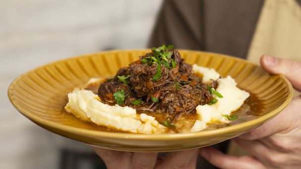Marzysz o mięsie, które będzie perfekcyjne pod każdym względem? A może chcesz, aby sam talerz z gotową potrawą wyglądał jak z najlepszej restauracji? Wykorzystaj nasz przepis dnia na długo duszoną wołowinę podaną na ziemniaczanym purée. Ta receptura nigdy nie zawodzi. Instrukcję krok po kroku znajdziesz w wideo. Lista składników czeka poniżej.
