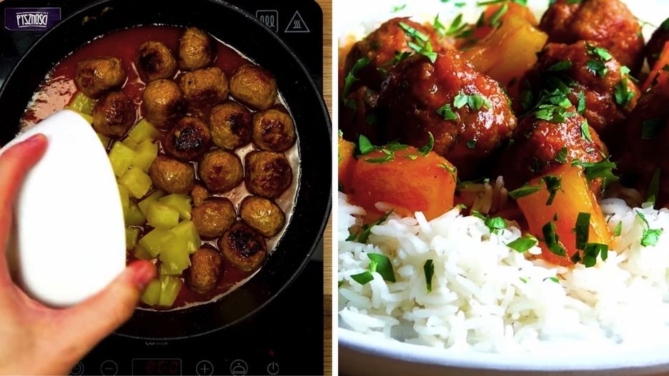 Pulpety w sosie BBQ z ananasem prosto z patelni